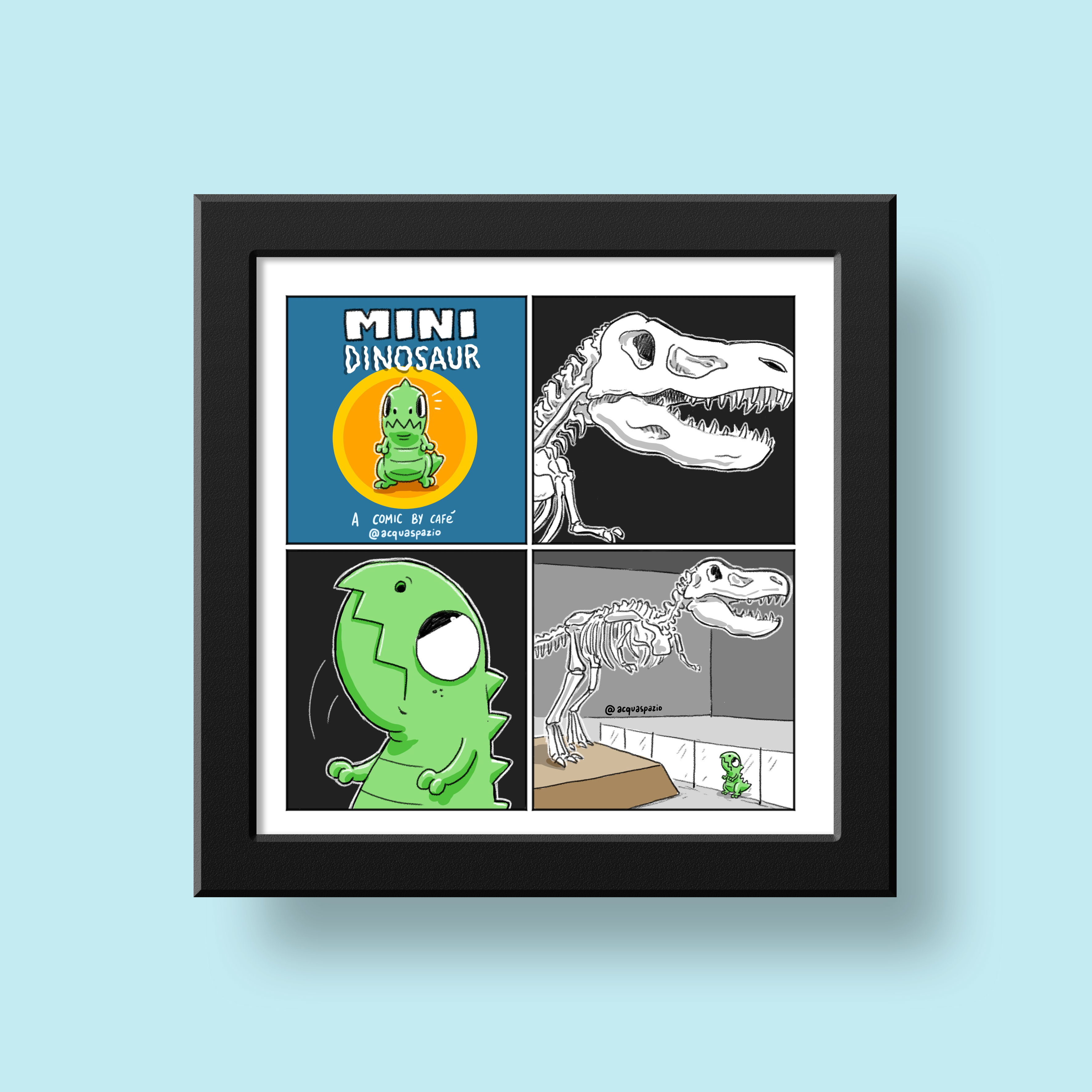 Mini Dinosaur VS Museum. print (unframed) Signed on front by the artists Printed on 300 gram carton Format: 20 cm by 20 cm