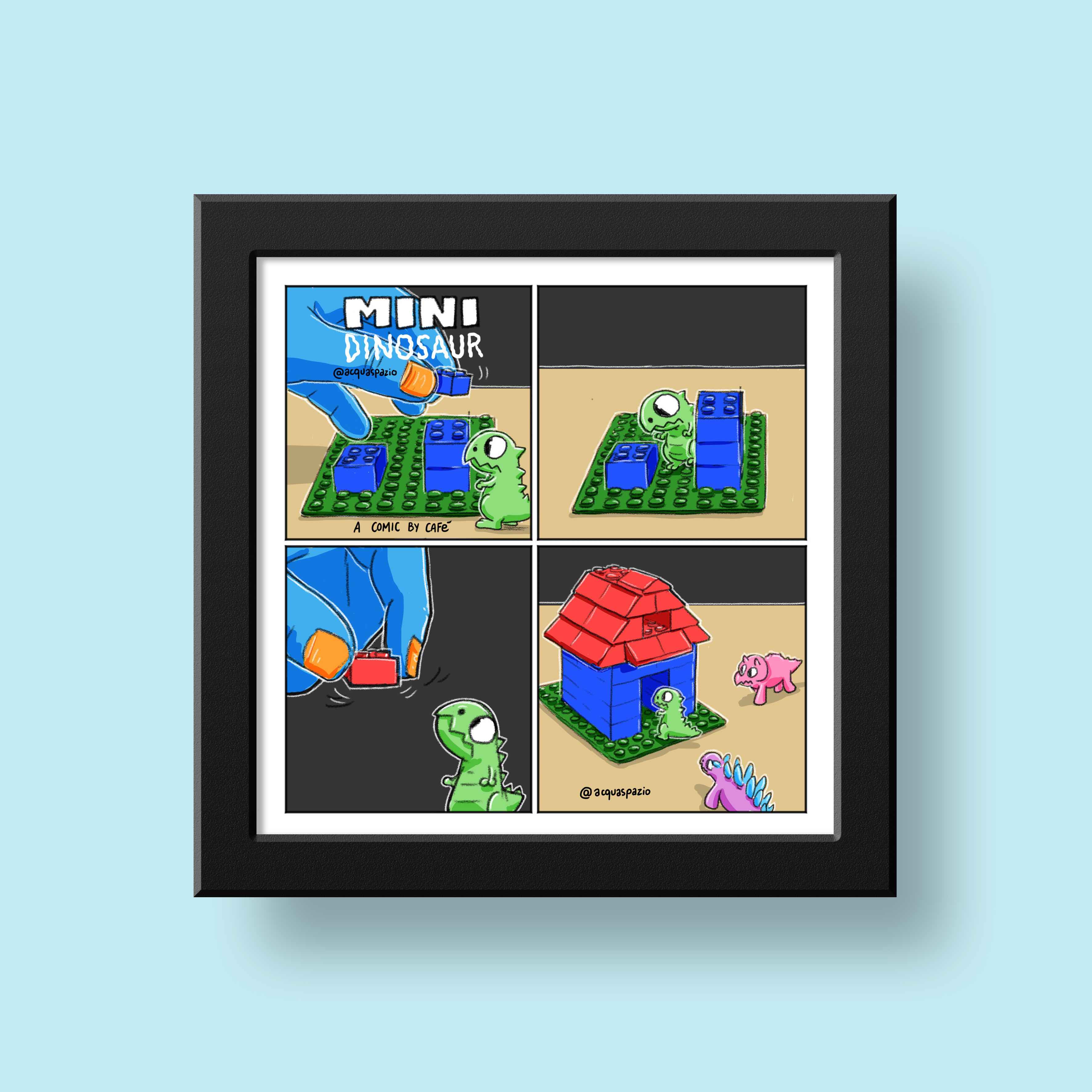 Mini dinosaur/Lego print (unframed) Signed on front by the artists Printed on 300 gram carton Format: 200 × 200 mm
